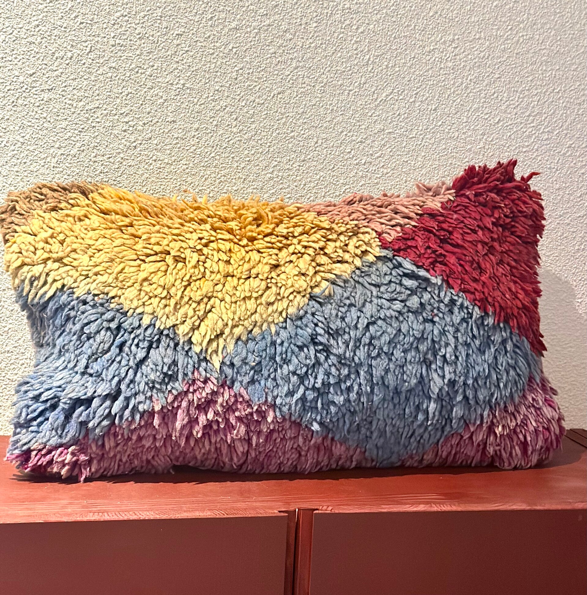 Handgemaakte Marokkaanse kussen van 100% wol, geleverd inclusief vulling!