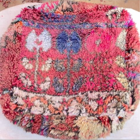 De poefen zijn gemaakt van vintage tapijten uit Marokko en bestaan uit 100% wol. Ze worden gemaakt door hulp van de berber vrouwen uit het atlasgebergte in Marokko. Zo heeft elke poef zijn eigen uniek verhaal en persoonlijkheid