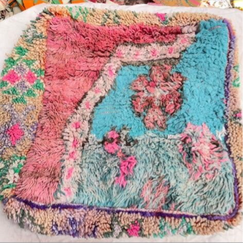 De poefen zijn gemaakt van vintage tapijten uit Marokko en bestaan uit 100% wol. Ze worden gemaakt door hulp van de berber vrouwen uit het atlasgebergte in Marokko. Zo heeft elke poef zijn eigen uniek verhaal en persoonlijkheid.